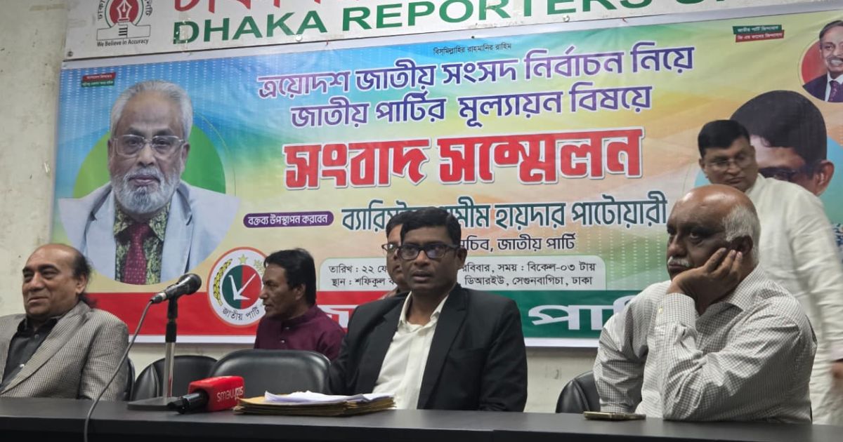 রোববার ঢাকা রিপোর্টার্স ইউনিটির শফিকুল কবির মিলনায়তনে ত্রয়োদশ জাতীয় সংসদ নির্বাচন নিয়ে জাতীয় পার্টির মূল্যায়ন বিষয়ে সংবাদ সম্মেলনে তিনি এ কথা বলেন।