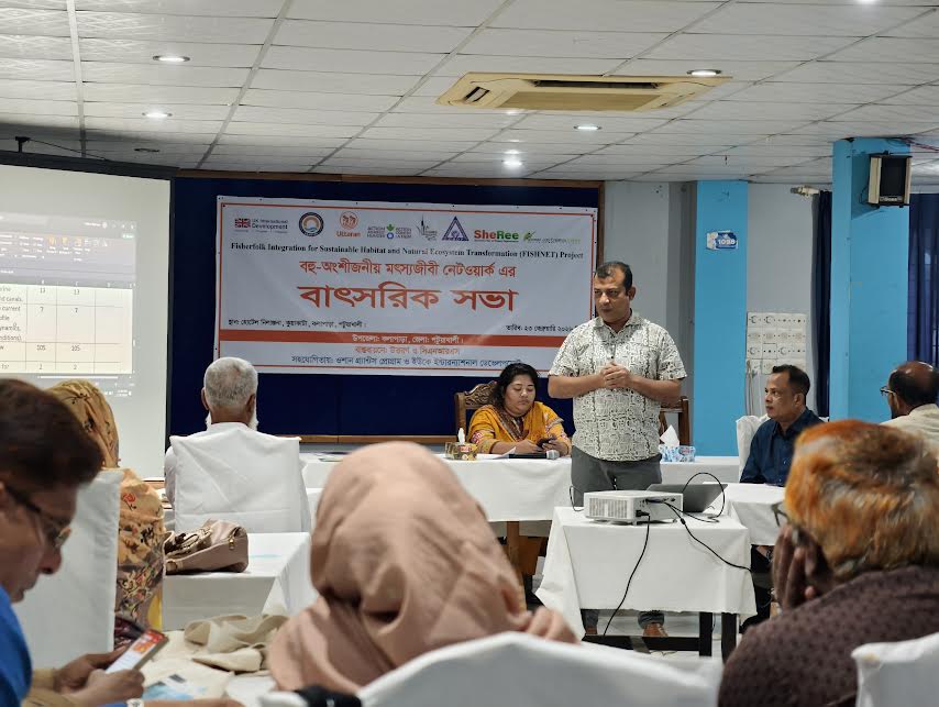 ফিশনেট প্রল্পের আওতায় বেসরকারী উন্নয়ন সংস্থা ‘উত্তরণ ও সিএনআরএস এর বাস্তবায়নে ওসান গ্রান্টস প্রোগ্রাম এবং ইউকে ইন্টারন্যাশনাল ডেভেলপমেন্টের আর্থিক সহেযোগীতায় ২৩ ফেব্রুয়ারী সোমবার সকাল ৯টায় ৩০ জন প্রতিনিধির উপস্থিতিতে সভা অনুষ্ঠিত হয়।
