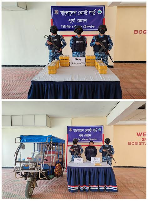 অপরদিকে, গোপন সংবাদের ভিত্তিতে একইদিন ভোর ৫টায় কোস্ট গার্ড স্টেশন টেকনাফ কর্তৃক কক্সবাজারের টেকনাফ থানাধীন জিরো পয়েন্ট সংলগ্ন মেরিন ড্রাইভ এলাকায় একটি বিশেষ অভিযান পরিচালনা করা হয়। অভিযান চলাকালীন উক্ত এলাকায় সন্দেহজনক ১টি ইজিবাইকে তল্লাশি করে প্রায় ৫০ লক্ষ টাকা মূল্যের ১০ হাজার পিস ইয়াবাসহ ১ মাদক পাচারকারীকে আটক করা হয়।