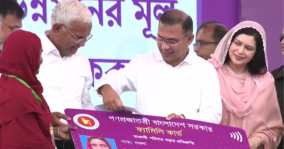 নিজস্ব প্রতিবেদক:: বাংলাদেশের প্রান্তিক জনগোষ্ঠীর অর্থনৈতিক মুক্তি ও সামাজিক নিরাপত্তা নিশ্চিত করতে এক অভিনব অধ্যায়ের সূচনা করলেন প্রধানমন্ত্রী তারেক রহমান। আজ মঙ্গলবার রাজধানীর বনানীর কড়াইল বস্তি সংলগ্ন টিঅ্যান্ডটি খেলার মাঠে এক বর্ণাঢ্য অনুষ্ঠানের মাধ্যমে তিনি ‘ফ্যামিলি কার্ড’ কর্মসূচির আনুষ্ঠানিক উদ্বোধন করেন।