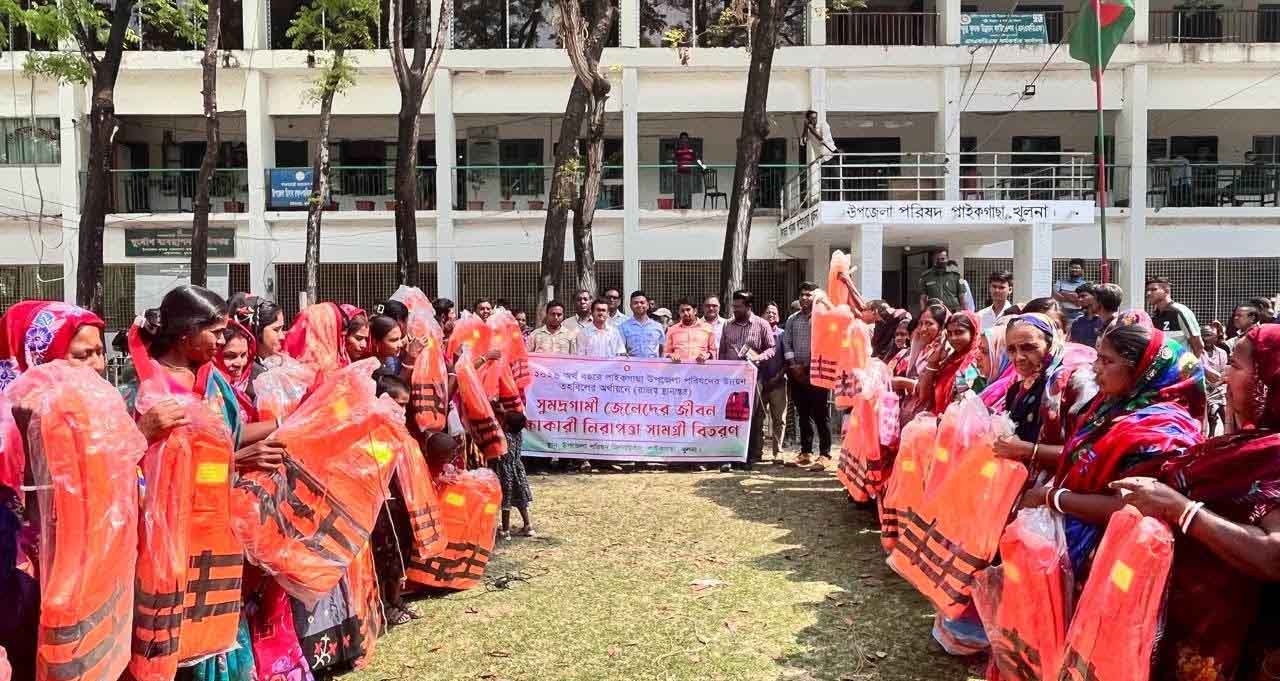পাইকগাছা (খুলনা) প্রতিনিধি:: পাইকগাছায় সমুদ্র ও গভীর নদীতে মাছ ধরতে যাওয়া জেলেদের নিরাপত্তা নিশ্চিত করতে জীবন রক্ষাকারী লাইফ জ্যাকেট বিতরণ করা হয়েছে। উপজেলা পরিষদের অর্থায়নে সমুদ্র ও গভীর নদীতে মাছ ধরতে যাওয়া ১৩৩ জন জেলের মাঝে এসব লাইফ জ্যাকেট প্রদান করা হয়।