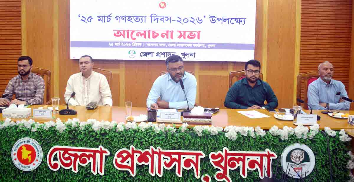 নিজস্ব প্রতিনিধি:: খুলনায় ২৫ মার্চ গণহত্যা দিবস উপলক্ষ্যে আলোচনা সভা বুধবার সকালে জেলা প্রশাসকের সম্মেলনকক্ষে অনুষ্ঠিত হয়। এতে সভাপতিত্ব করেন জেলা প্রশাসক আ. স. ম. জামশেদ খোন্দকার।