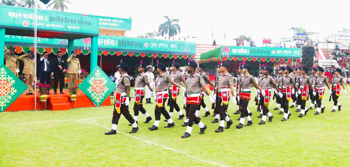 সকাল সাড়ে আটটায় খুলনা জেলা স্টেডিয়ামে আনুষ্ঠানিকভাবে জাতীয় পতাকা উত্তোলন করেন বিভাগীয় কমিশনার মোঃ মোখতার আহমেদ। পরে একই স্থানে পুলিশ, আনসার-ভিডিপি, বিএনসিসি, ফায়ার সার্ভিস ও সিভিল ডিফেন্স, কারারক্ষী ও শিক্ষাপ্রতিষ্ঠানের শিক্ষার্থীদের সমাবেশ, কুচকাওয়াজ ও পুরস্কার বিতরণ করা হয়। বিভাগীয় কমিশনার প্রধান অতিথি হিসেবে কুচকাওয়াজে সালাম গ্রহণ করেন। পুলিশের রেঞ্জ ডিআইজি মোঃ রেজাউল হক, কেএমপি অতিরিক্ত পুলিশ কমিশনার মোহাম্মদ রাশিদুল ইসলাম খান, জেলা প্রশাসক আ. স. ম জামশেদ খোন্দকার, পুলিশ সুপার মোহাম্মদ মাহবুবুর রহমান, বীর মুক্তিযোদ্ধাসহ বিভিন্ন সরকারি দপ্তরের কর্মকর্তাগণ এসময় উপস্থিত ছিলেন। নগরভবনে সিটি কর্পোরেশনের আয়োজনে শিশুদের চিত্রাংকন ও রচনা প্রতিযোগিতা, আলোচনা সভা ও পুরস্কার বিতরণ অনুষ্ঠিত হয়। অনুষ্ঠানে প্রধান অতিথি ছিলেন কেসিসি প্রশাসক নজরুল ইসলাম মঞ্জু। কেসিসি প্রধান নির্বাহী কর্মকর্তা রাজিব আহমেদের সভাপতিত্বে অনুষ্ঠানে প্রধান প্রকৌশলী মশিউজ্জামান খান, প্রধান রাজস্ব কর্মকর্তা রহিমা সুলতানা বুশরা প্রমুখ উপস্থিত ছিলেন।