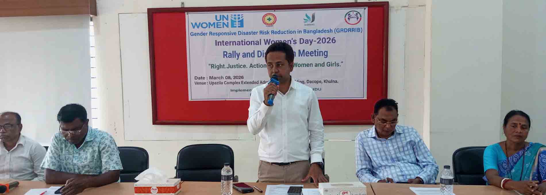দাকোপ প্রতিনিধি:: দাকোপে আন্তর্জাতিক নারী দিবস পালন উপলক্ষ্যে বর্নাঢ্য র্যালি ও আলোচনা সভা অনুষ্ঠিত হয়েছে। “অধিকার, ন্যায়বিচার ও কার্যকর পদক্ষেপ-সকল নারী ও কন্যার জন্য” এই প্রতিপাদ্য বিষয়কে সামনে রেখে জিআরডিআরআরআইবি প্রকল্পের আওতায় বে-সরকারী উন্নয়ন সংস্থা asddw (এএসডিডিডাবুø’র) আয়োজনে এবং ইউএন ইউমেন আর্থিক সহযোগীতায় রবিবার (২৯ মার্চ) বেলা ১১ টায় উপজেলা পরিষদের সামনে থেকে একটি বর্নাঢ্য র্যালি চালনা পৌরসভা প্রধান প্রধান সড়ক প্রদক্ষিণ করে। পরে উপজেলা পরিষদ মিলনায়তনে asddw (এএসডিডিডাবুø’র) নির্বাহী পরিচালক লিপিকা বৈরাগীর সভাপতিত্বে অনুষ্ঠিত সভায় প্রধান অতিথির বক্তৃতা করেন উপজেলা নির্বাহী অফিসার মোঃ বোরহান উদ্দিন মিঠু। বিশেষ অতিথির বক্তৃতা করেন উপজেলা যুব উন্নয়ন কর্মকর্তা রেজাউল করিম, উপজেলা উপ-সহকারী কৃষি কর্মকর্তা মিন্টু রায়, উপজেলা মহিলা অধিদপ্তরের গেট সুপার ভাইজার জাকারিয়া আল হেলাল, এএসডিডিডাব্লুর কো-অডিনেটেটর গোপাল চন্দ্র বৈরাগী, রায়মোহন সরকার,কনিকা বৈরাগী প্রমুখ। সভায় উপজেলা বিপুল সংখ্যাক নারীনেত্রী উপস্থিত ছিলেন।