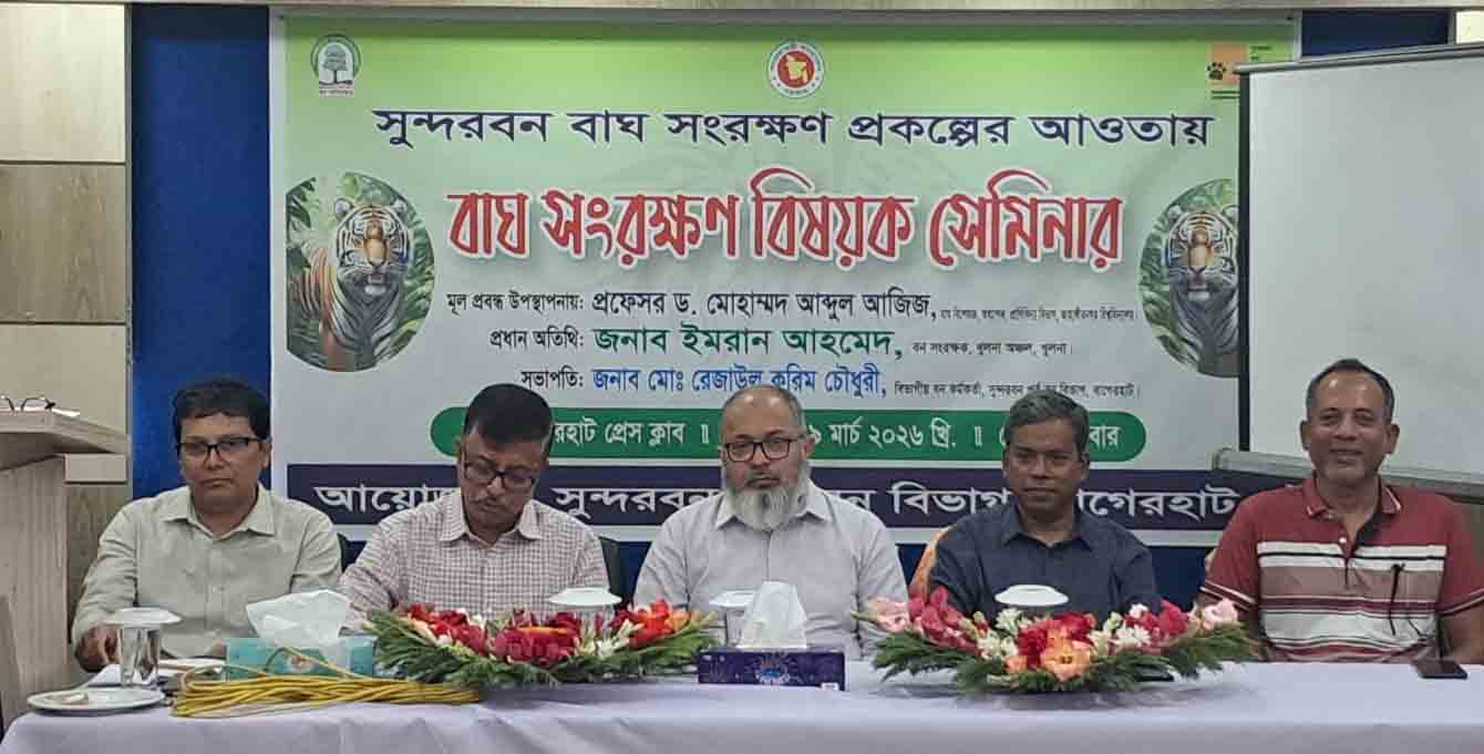 বাগেরহাট প্রতিনিধি:: সুন্দরবনে বাঘ সংরক্ষণ প্রকল্পের আওতায় বাগেরহাট প্রেসক্লাবের হলরুমে এক সেমিনার অনুষ্ঠিত হয়েছে।