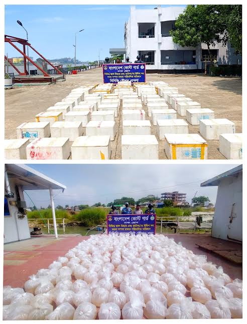 অপরদিকে, একইদিনে সকাল সাড়ে ৭টা হতে ৯টা পর্যন্ত কোস্ট গার্ড স্টেশন পাগলা কর্তৃক নারায়ণগঞ্জের কাঁচপুর ব্রিজ সংলগ্ন এলাকায় একটি বিশেষ অভিযান পরিচালনা করা হয়। অভিযান চলাকালীন উক্ত এলাকায় কুমিল্লা হতে সাতক্ষীরাগামী সন্দেহজনক ২টি মাইক্রোবাস তল্লাশি করে প্রায় ২ কোটি ৭ লক্ষ ৫০ হাজার টাকা মূল্যের ৪১ লক্ষ ৫০ হাজার পিস অবৈধ চিংড়ি রেনু জব্দ করা হয়।