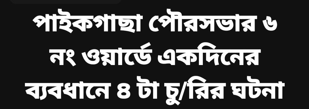 পাইকগাছা (খুলনা) প্রতিনিধি:: পাইকগাছা পৌরসভার ৬ নম্বর ওয়ার্ডে মাত্র এক দিনের ব্যবধানে চারটি চুরির ঘটনা ঘটেছে। আকস্মিক এই চুরির ঘটনায় এলাকায় চরম উদ্বেগ ও আতঙ্ক ছড়িয়ে পড়েছে। ধারাবাহিক এমন ঘটনায় স্থানীয়দের মধ্যে আইনশৃঙ্খলা পরিস্থিতির অবনতি নিয়ে প্রশ্ন উঠেছে। গত বুধবার (১ এপ্রিল) থেকে বৃহস্পতিবার (২ এপ্রিল) পর্যন্ত একদিনের ব্যবধানে এ চারটি পৃথক চুরির ঘটনা ঘটে।
