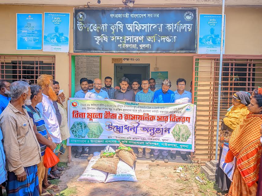 পাইকগাছা (খুলনা) প্রতিনিধি:: পাইকগাছায় কৃষি উৎপাদন বৃদ্ধির লক্ষে ক্ষুদ্র ও প্রান্তিক কৃষকদের মাঝে সরকারি কৃষি প্রণোদনা কর্মসূচির আওতায় বিনামূল্যে বীজ ও রাসায়নিক সার বিতরণ কার্যক্রমের উদ্বোধন করা হয়েছে।