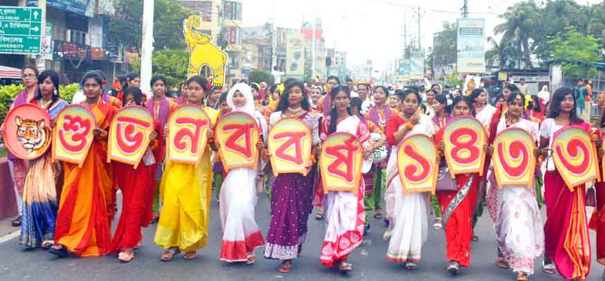 সকালে রেলওয়ে স্টেশন প্রাঙ্গণ থেকে বৈশাখি শোভাযাত্রা বের হয়ে নগরীর বিভিন্ন সড়ক প্রদক্ষিণ করে শহিদ হাদিস পার্কে গিয়ে শেষ হয়। শোভাযাত্রায় সরকারি-বেসরকারি দপ্তরের কর্মকর্তা, বিভিন্ন সামাজিক, সাংস্কৃতিক সংগঠন, শিক্ষক-শিক্ষার্থীসহ বিভিন্ন শ্রেণি পেশার মানুষ অংশ নেন।