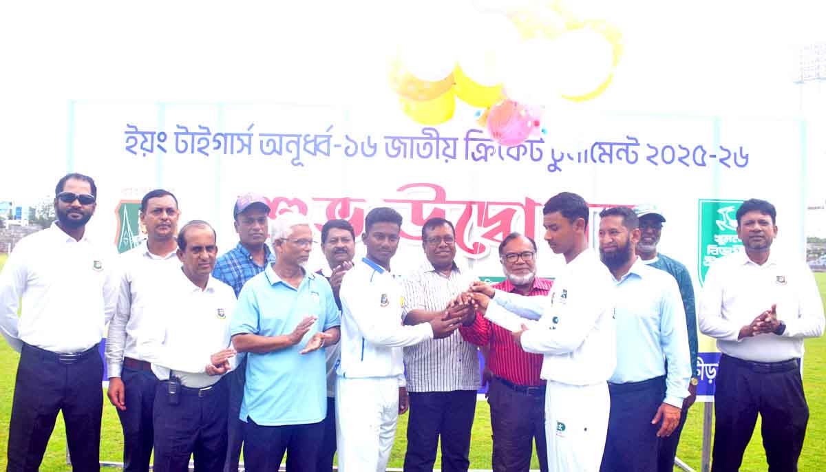 নিজস্ব প্রতিনিধি:: ইয়ং টাইগার্স অনূর্ধ্ব-১৬ জাতীয় ক্রিকেট টুর্নামেন্ট ২০২৫-২৬ এর উদ্বোধন অনুষ্ঠান শুক্রবার খুলনা বিভাগীয় স্টেডিয়াম মাঠে অনুষ্ঠিত হয়। অনুষ্ঠানে প্রধান অতিথি ছিলেন অতিরিক্ত বিভাগীয় কমিশনার (উন্নয়ন) আবু সায়েদ মোঃ মনজুর আলম।