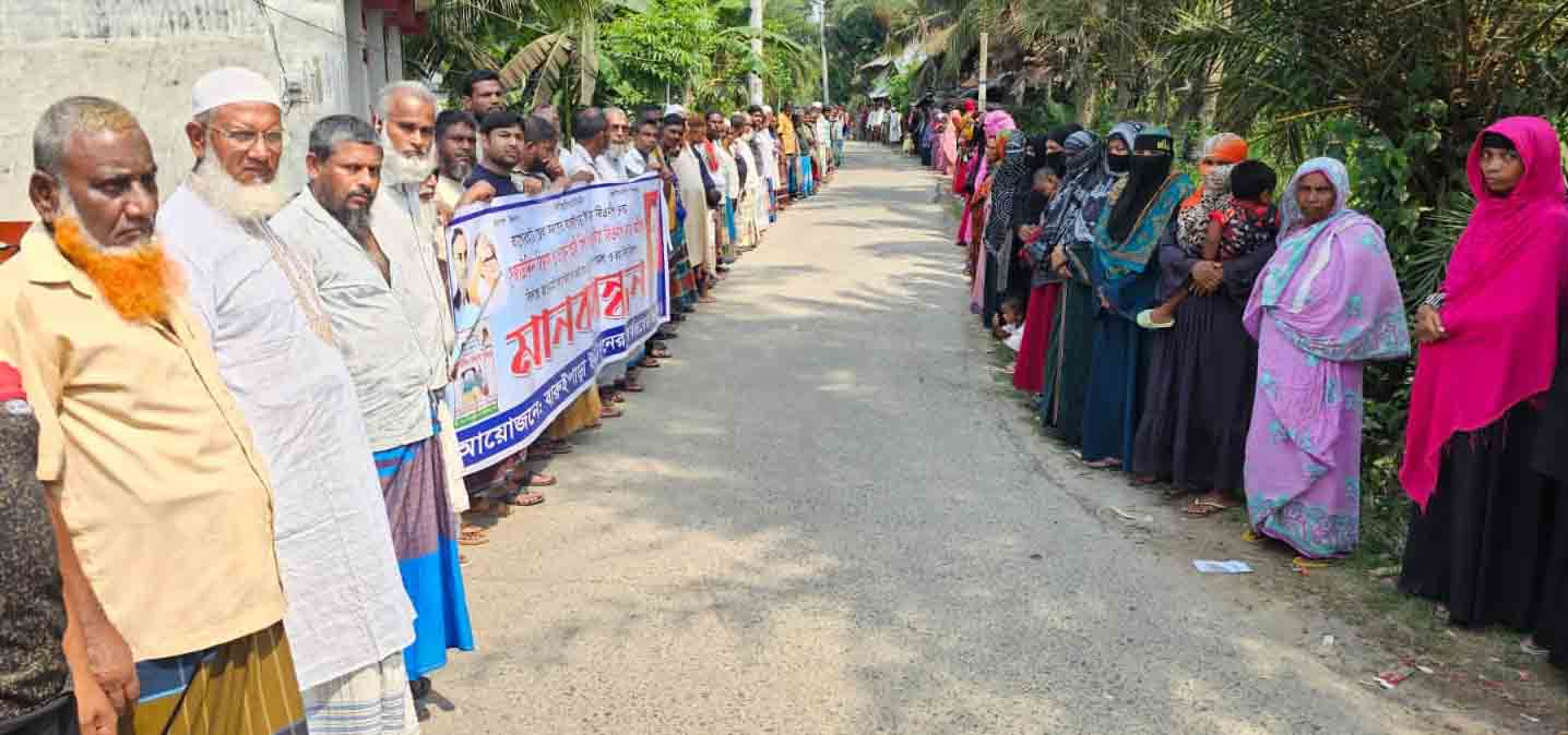 সোমবার (২০ এপ্রিল) সকালে বারুইপাড়া এলাকার কার্তিক দিয়া মাধ্যমিক বিদ্যালয়ের সামনে প্রায় এক ঘণ্টাব্যাপী এ মানববন্ধন অনুষ্ঠিত হয়। বারুইপাড়া ইউনিয়নবাসীর আয়োজনে কর্মসূচিতে বিভিন্ন শ্রেণি-পেশার বিপুলসংখ্যক মানুষ অংশ নেন।