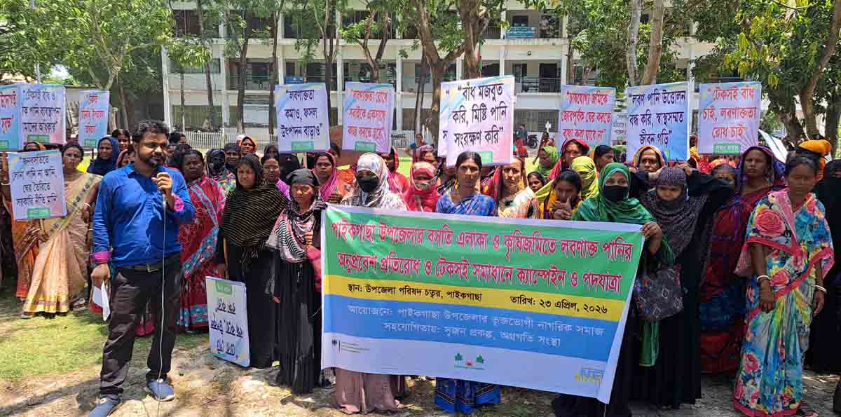 সমাবেশে বক্তারা বলেন, অব্যবস্থাপনা, দুর্বল ও অপর্যাপ্ত বেড়িবাঁধ, নদী ও খাল ভরাট এবং জলবায়ু পরিবর্তনের প্রভাবে লবণাক্ত পানি ক্রমাগতভাবে বসতি এলাকা ও কৃষিজমিতে প্রবেশ করছে। এর ফলে কৃষি উৎপাদন হ্রাস পাচ্ছে, সুপেয় পানির সংকট তীব্র হচ্ছে এবং জনস্বাস্থ্যের ঝুঁকি বাড়ছে।