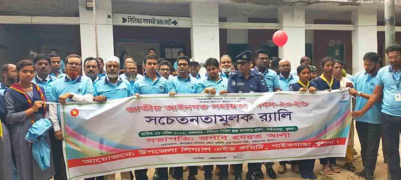 পাইকগাছা (খুলনা) প্রতিনিধি:: “সরকারি খরচে বিরোধ শেষ, সবার আগে বাংলাদেশ” প্রতিপাদ্যকে সামনে রেখে খুলনার পাইকগাছায় যথাযোগ্য মর্যাদায় জাতীয় আইনগত সহায়তা দিবস পালিত হয়েছে। এ উপলক্ষে মঙ্গলবার (২৮ এপ্রিল) সকালে উপজেলা লিগ্যাল এইড কমিটির উদ্যোগে নানা কর্মসূচির আয়োজন করা হয়।