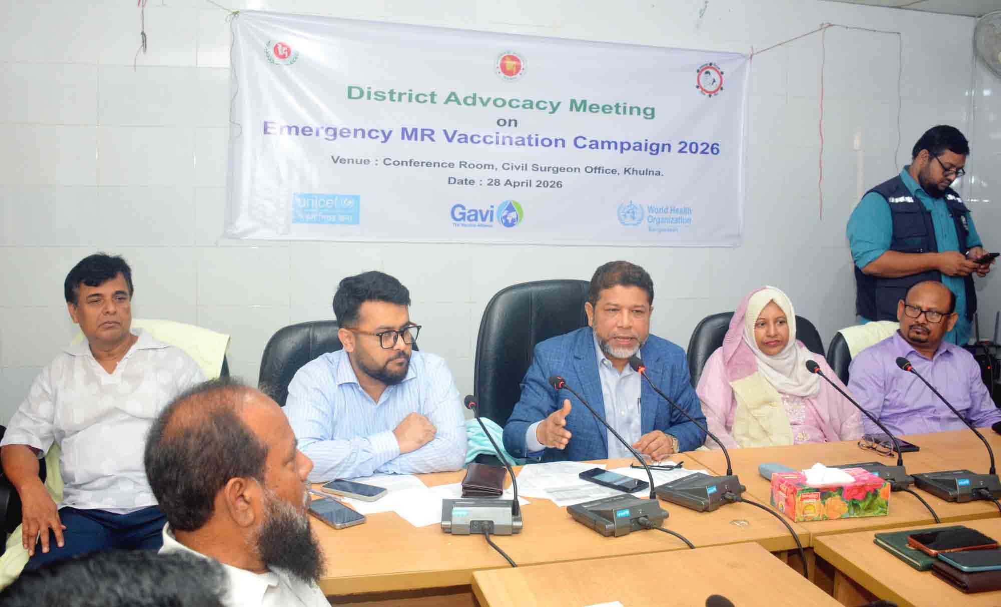 নিজস্ব প্রতিনিধি:: হাম-রুবেলা ক্যাম্পেইন ২০ এপ্রিল থেকে ১০ মে ২০২৬ তারিখ পর্যন্ত কার্যক্রম চলমান রয়েছে। এই সময়ের মধ্যে ৬ মাস থেকে ৫ বছরের কম বয়সী সকল শিশুকে এক ডোজ হাম-রুবেলা টিকা প্রদান করা হচ্ছে। এরই ধারাবাহিকতায় সোমবার খুলনা সিভিল সার্জন দপ্তরের সম্মেলনকক্ষে জেলা পর্যায়ের অ্যাডভোকেসি সভা অনুষ্ঠিত হয়।