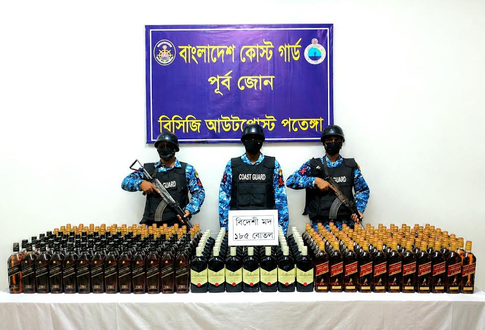 মনির হোসেন :: চট্টগ্রামের পতেঙ্গায় প্রায় ৭০ লক্ষ টাকা মূল্যের ১৮৫ বোতল বিদেশি মদ জব্দ করেছে কোস্টগার্ড।