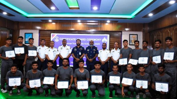 মনির হোসেন:: চট্টগ্রাম বন্দরের ১৮ জন ওয়াচম্যানকে নিরাপত্তা বিষয়ক বুনিয়াদি প্রশিক্ষণ প্রদান করেছে কোস্ট গার্ড রবিবার (১০ আগস্ট) বিকালে কোস্টগার্ড মিডিয়া কর্মকর্তা লেফটেন্যান্ট কমান্ডার সিয়াম-উল-হক এ তথ্য জানান। তিনি বলেন,