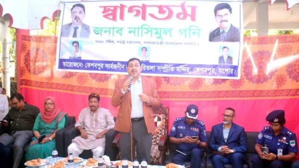 নিজস্ব প্রতিনিধি:: স্বরাষ্ট্র মন্ত্রণালয়ের সিনিয়র সচিব নাসিমুল গনি শারদীয় দুর্গাপূজা উপলক্ষ্যে বুধবার দুপুরে যশোর জেলার কেশবপুর উপজেলার কেশবপুর সার্বজনীন শ্রী শ্রী হরিতলা সম্প্রীতি মন্দির, কালিবাড়ি সার্বজনীন পূজা মন্দির, ত্রীপল্লী সার্বজনীন