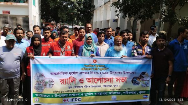 পাইকগাছা(খুলনা) প্রতিনিধি:: “সমন্বিত উদ্যোগ, প্রতিরোধ করি দুর্যোগ”এই প্রতিপাদ্যকে সামনে রেখে পাইকগাছায় আন্তর্জাতিক দুর্যোগ প্রশমন দিবস-২০২৫ পালিত হয়েছে। এ উপলক্ষে সোমবার (১৩ অক্টোবর) সকাল ১১টায় উপজেলা প্রশাসন ও দুর্যোগ ব্যবস্থাপনা অধিদপ্তরের