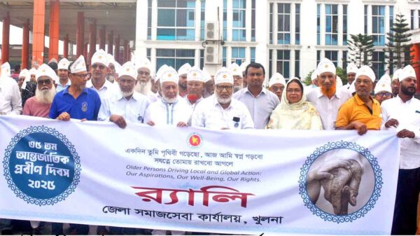 নিজস্ব প্রতিনিধি:: ‘স্থানীয় ও বৈশ্বিক কর্মকান্ডের চালিকাশক্তি বয়স্ক ব্যক্তিরা: আমাদের আকাঙ্খা, আমাদের মঙ্গল, আমাদের অধিকার’ এই প্রতিপাদ্য নিয়ে খুলনায় ৩৫তম আন্তর্জাতিক প্রবীণ দিবস পালিত হয়। দিবসটি উপলক্ষ্যে মঙ্গলবার সকালে খুলনা