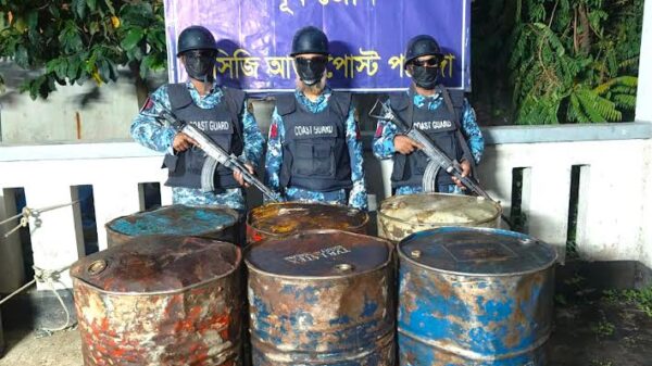 কোস্টগার্ডের অভিযানে ১ হাজার লিটার চোরাই সয়াবিন তেল জব্দ