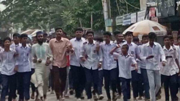 দাকোপ প্রতিনিধি:: দাকোপে জাতীয়তাবাদী মহিলা দলনেত্রী ক্লাসে ঢুকে স্কুল শিক্ষককে মারপিট করেছে। ঘটনার প্রতিবাদে তাৎক্ষনিক বিক্ষোভ মিছিল করে বিচার দাবী করে শিক্ষার্থীরা। পরবর্তীতে মিছিলকারী শিক্ষার্থীদের হুমকি দেওয়ায় ক্ষোভে ফুঁসছে শিক্ষার্থী