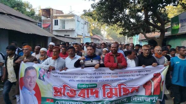 ইনকিলাব মঞ্চের মুখপাত্র ওপর হামলার প্রতিবাদে ঘোড়াঘাট পৌর বিএনপির বিক্ষোভ মিছিল