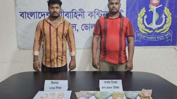 ভোলার লালমোহন থেকে দুই মাদক ব্যবসায়ীকে আটক করেছে নৌবাহিনী