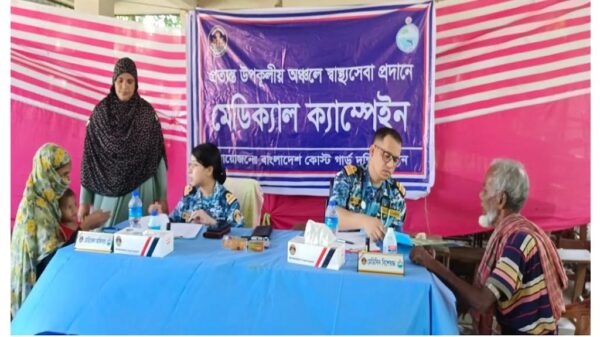 কোস্টগার্ডের উদ্যোগে বিনামূল্যে চিকিৎসা সহায়তা ও জেলেদের ত্রাণ বিতরণ